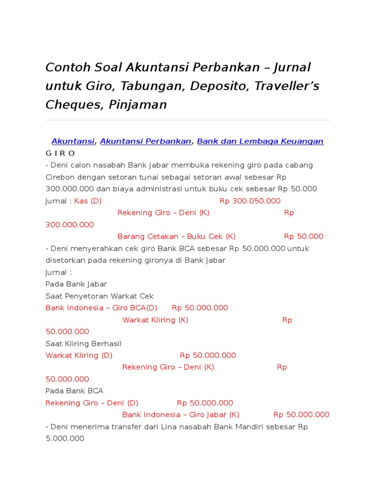Contoh Soal Akuntansi Perbankan Jurnal Untuk Giro