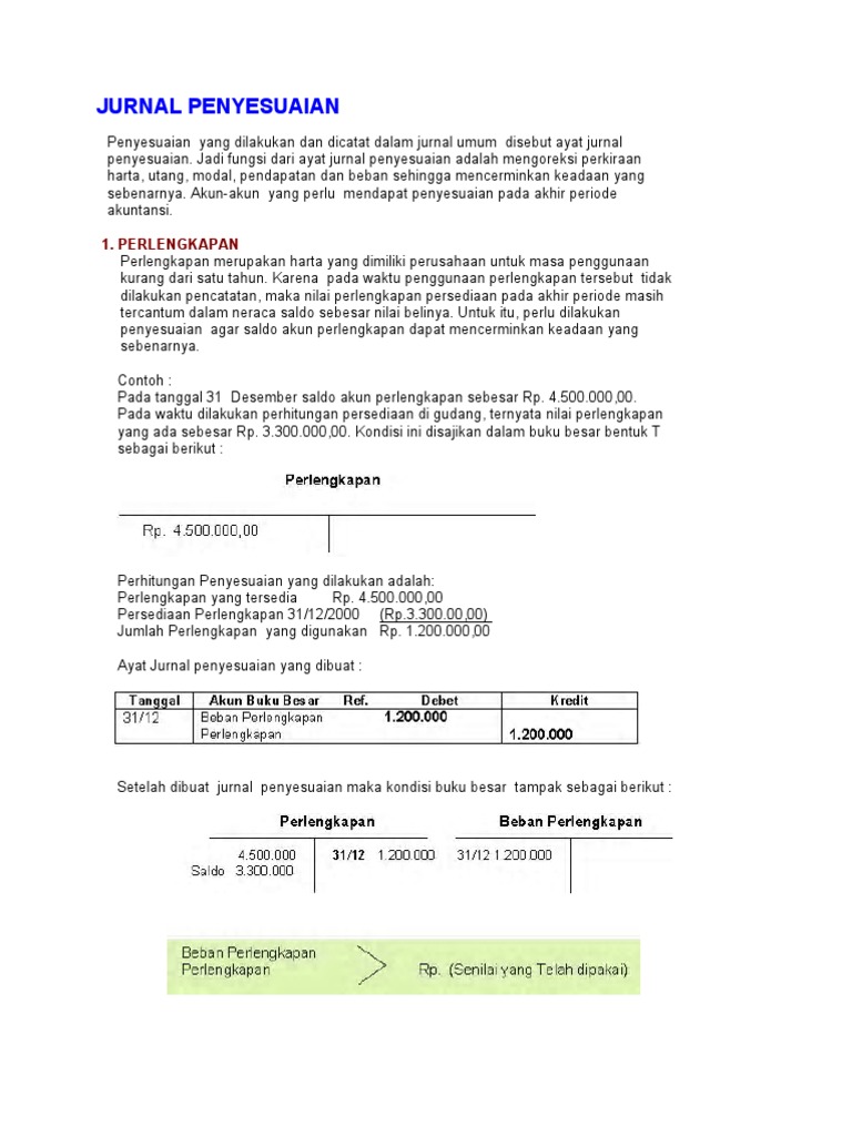 Lengkap Pengertian Jurnal Penyesuaian Dan Contohnya